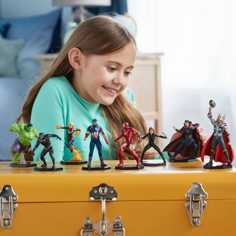 - Includes: Black Widow, Hulk, Doctor Strange, Iron Man, Captain America, Captain Marvel, Black Panther, and Thor