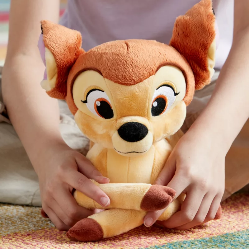 With his endearing embroidered expression, this super soft Bambi toy will win your heart in no time! The adorable toy depicts baby Bambi before he can stand, complete with a cute butterfly on his tail.