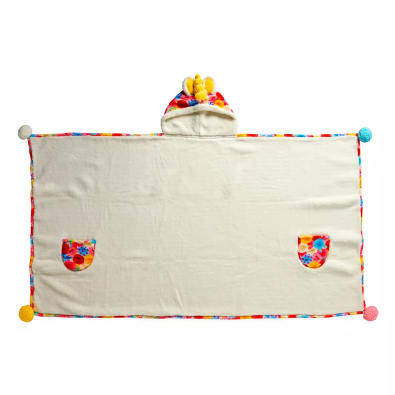 Enjoy snuggling up in this comfy throw! Inspired by lovable Buttercup from Toy Story, this wearable throw features a hood with a unicorn horn and ears.