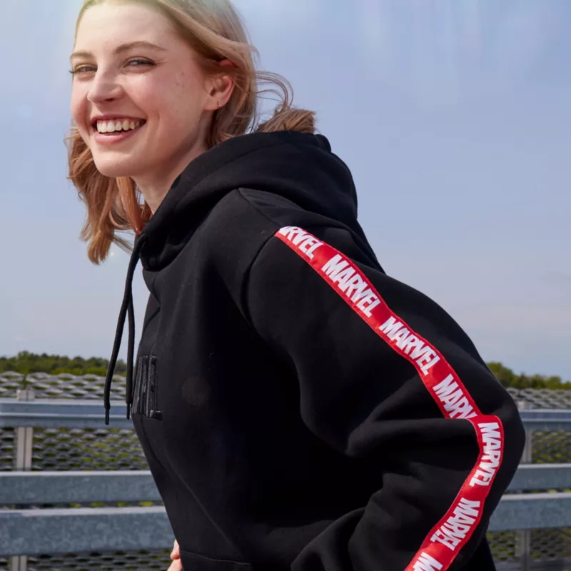 Set off to save the galaxy in style with our Marvel Hooded Sweatshirt. The comfy design features embroidered ‘Marvel’ wording on the chest, contrast taping on the arms, and a large front pocket.