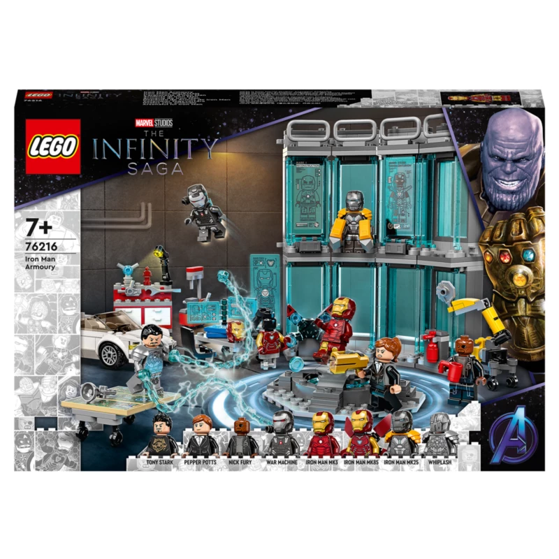 - Set includes Tony Stark’s headquarters and Hall of Armour Room, high-tech Iron-Man suits and workshop area