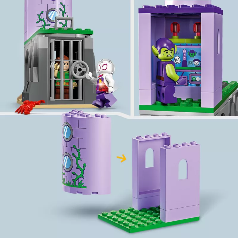 - Includes: Miles Morales, Ghosty, Sandman and Green Goblin minifigures, plus a buildable pirate shipwreck, railway, cave jail and the lighthouse headquarters of Green Goblin