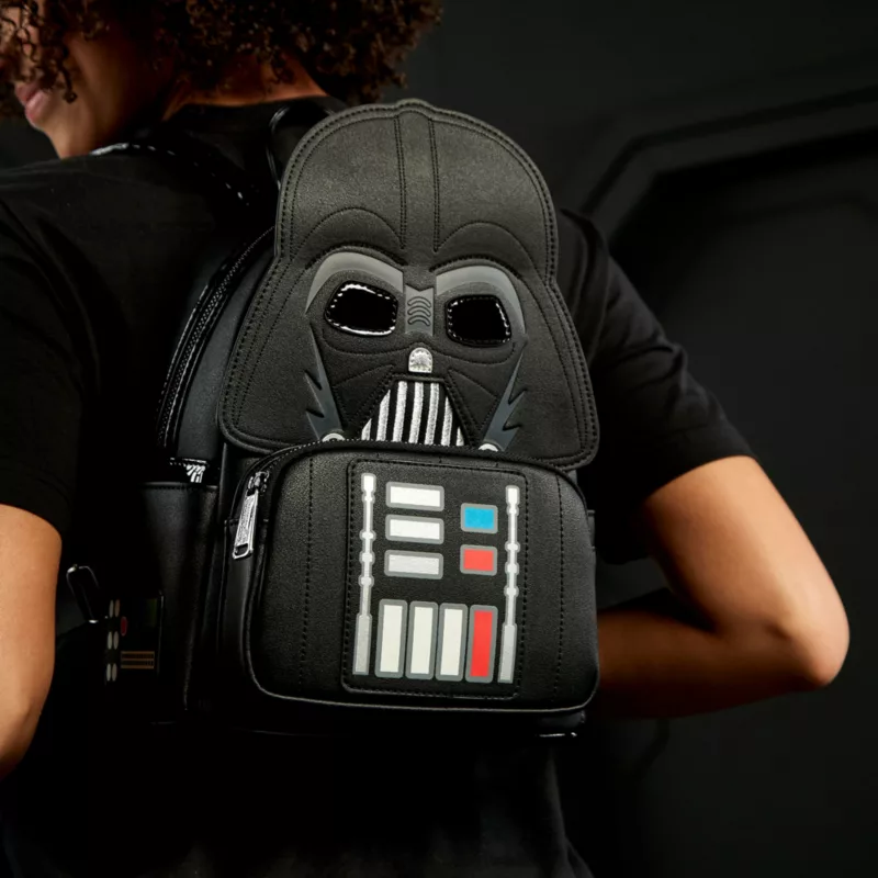Cross over to the dark side with this Loungefly Darth Vader Backpack. The characterful carryall features stylised artwork of the Sith Lord, a zip top main compartment, a front zipper pocket, and side pockets, to fit all the essentials you need to rule the galaxy.