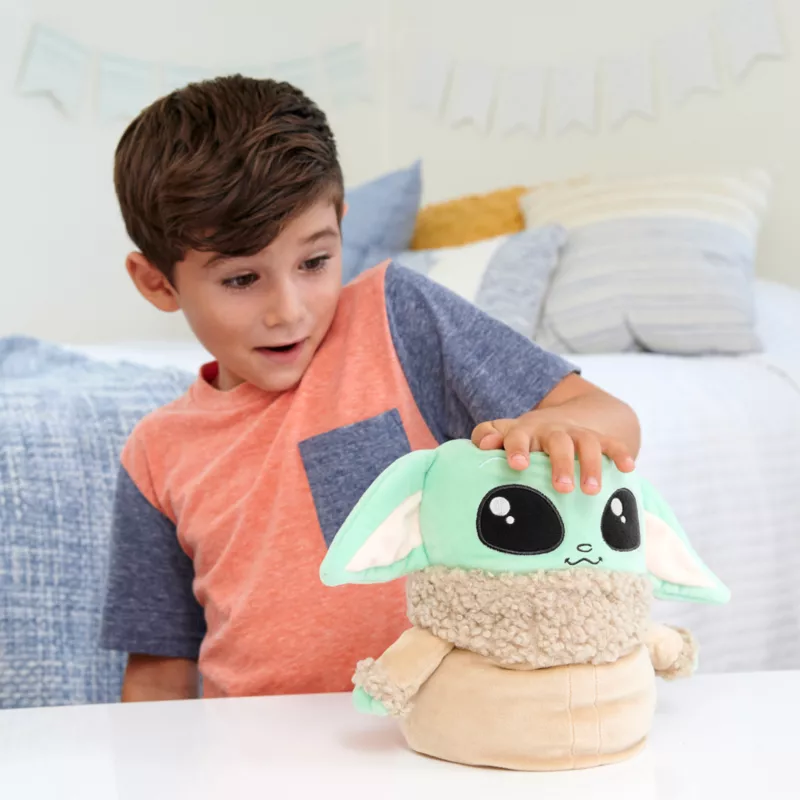 Jump into playtime action with this Jumping Grogu Feature Soft Toy! Whether leaping across stones with Luke Skywalker or jumping into the arms of the Mandalorian, Grogu is always ready to launch himself into the next adventure. Celebrating his new skills as seen in the original Disney+ series, Star Wars: The Book of Boba Fett, Grogu will jump and make sounds when his head is pressed downward! At about 11-inches tall, Jumping Grogu Plush toy is perfect for Star Wars fans of all ages 3 years old and up!
