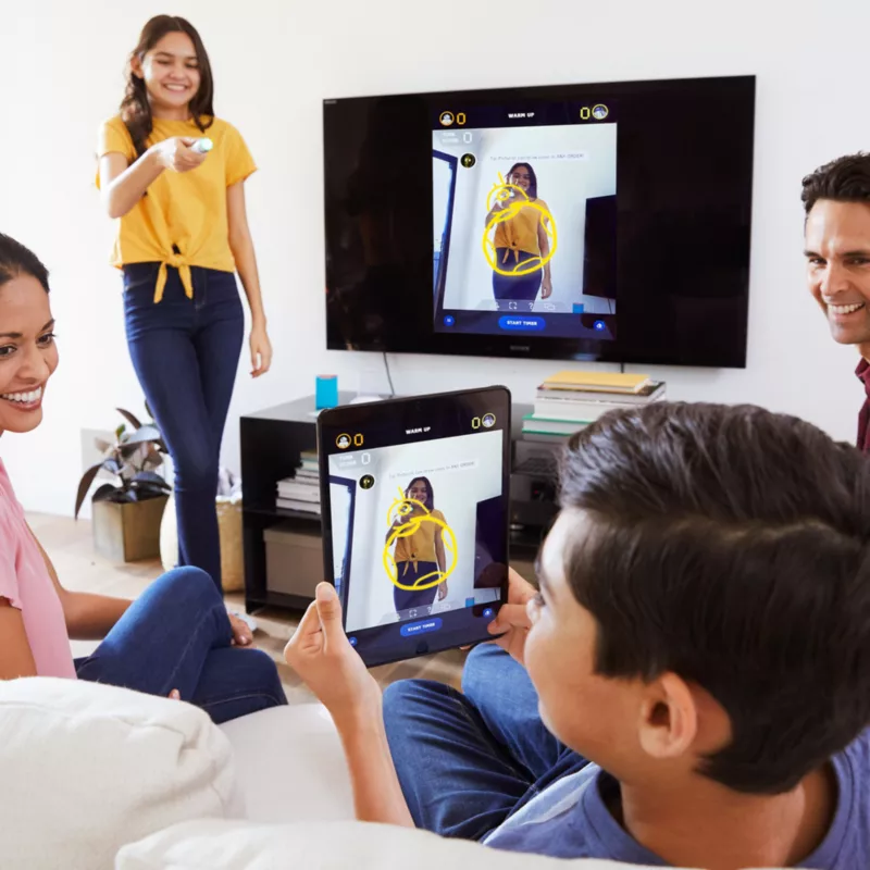 - Players take turns drawing clues in the air and interacting with the images, like charades, while their teammates guess!