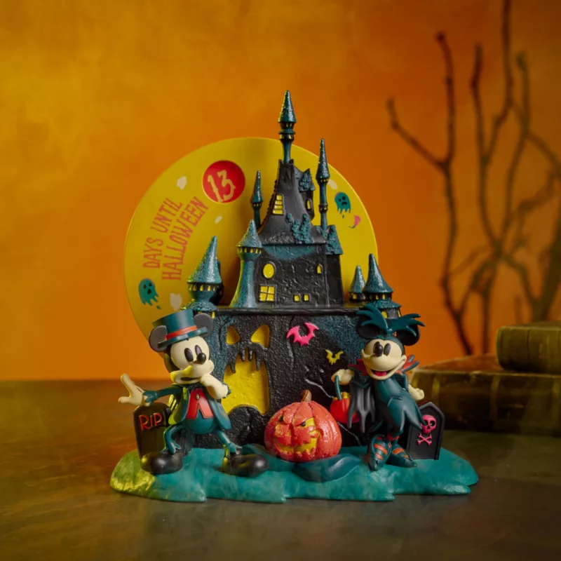 Mickey and Minnie are here to help you countdown the days until Halloween with this spooktacular countdown block! Perfect for desktops, the frightfully fun design features sculpted character details and a spinning wheel which allows you to change the display.