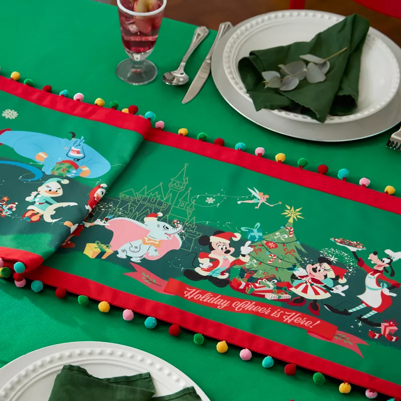 Outfit your table in festive fashion with this Mickey and Friends Reversible Festive Table Runner. Featuring a vibrant pattern of snowflakes and baubles on one side and a holiday gathering of Mickey, Minnie, Dumbo, Pinocchio and friends on the other side, this table runner is filled with seasonal style!
