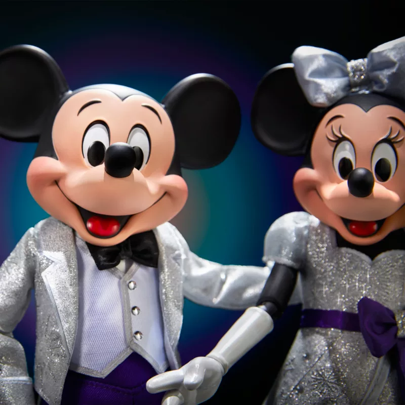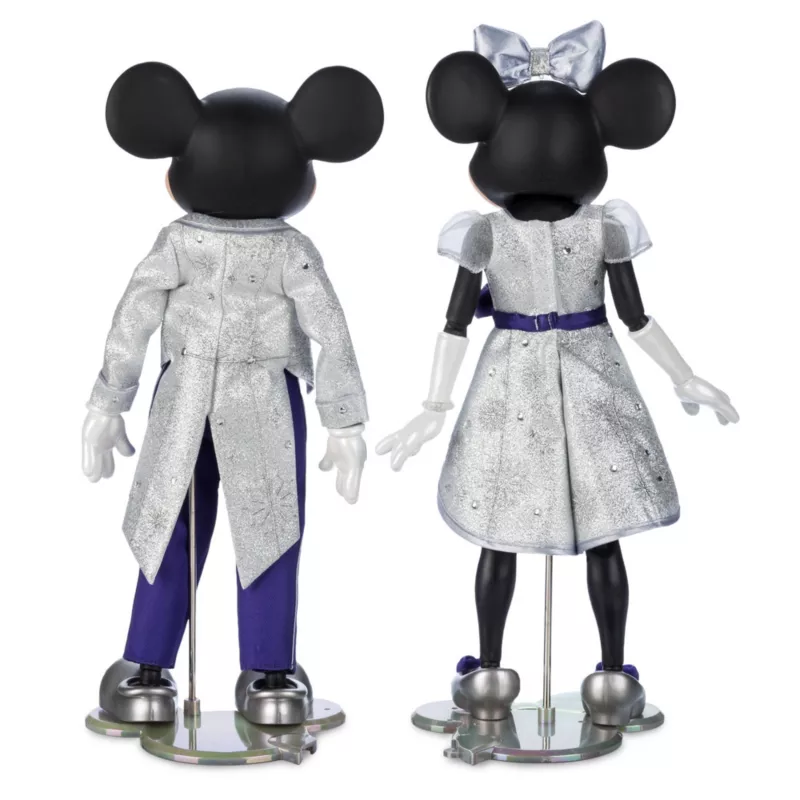 Celebrate Disney’s 100th Anniversary with this limited-edition platinum-coloured Mickey and Minnie Mouse doll set. Our dashing duo dazzles in their gleaming party attire with delicate embroidery and rhinestone embellishments. Appearing as they do at the Disney Parks, this two-piece set was meticulously designed by Disney artists to bring the magic alive for you to enjoy in the decades to come.