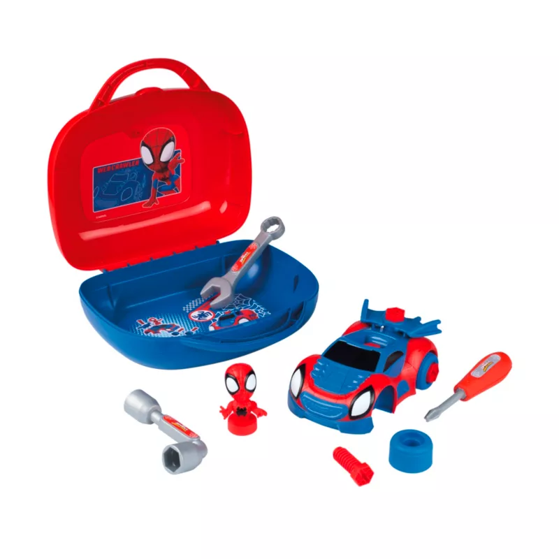 Become a real handyman thanks to the tools box in the colours of Spidey and his amazing friends! You will be able to easily build Spidey’s crawler thanks to the included accessories: 1 screwdriver, 1 spanner, 1 socket wrench, screws and wheels. You can transport your tools box everywhere thanks to the handle.