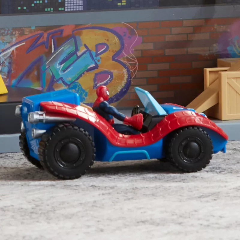 Your kiddo can create epic battles between Spider-Man and arch-nemesis Green Goblin with this Spider-Man Play Set. They can help him cast his webs or let him scale the wall with his magnetic feet and hands. They can even swing and launch him in the air. Also featuring a car, see-saw and crate, this play set helps them set the stage for great Spidey adventures – the ones they create themselves.