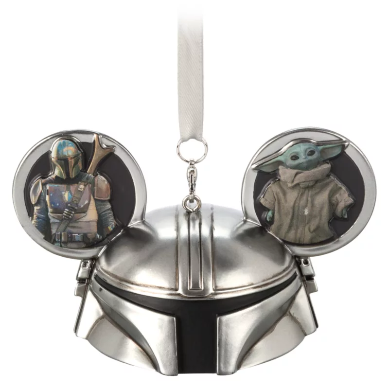 The iconic helmet of Mandalorian Din Djarin sprouts Mickey Mouse ears for this fully sculpted Sketchbook Ornament designed by artist Costa Alvesos. The Mandalorian and his charge, Grogu, are shown on the front of each ear with additional characters printed on back. A gleaming metallic finish makes this a dazzling addition to your tree decoration selection.