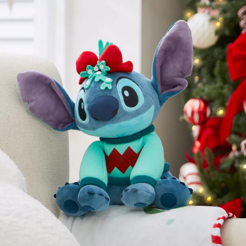 Bring a little mischief to the festive fun with our Stitch medium soft toy! The adorable stuffed alien with knit sweater, bow and mistletoe, has come from outer space to help celebrate the season with you.