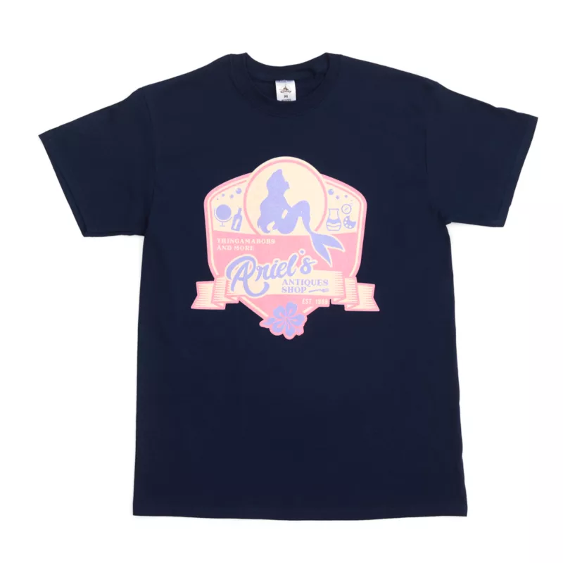 Set off on the search for whosits and whatsits galore in this The Little Mermaid t-shirt! Inspired by the Disney classic, the charming tee features silhouette-style character artwork and ‘Ariel’s Antiques Shop’ wording. Customise to make it your own!