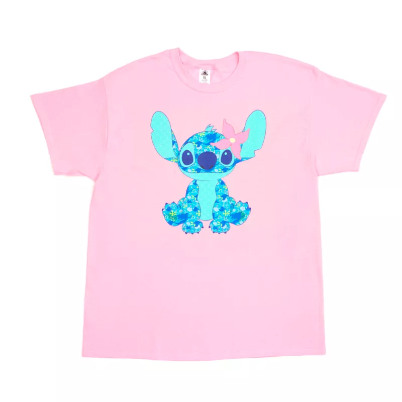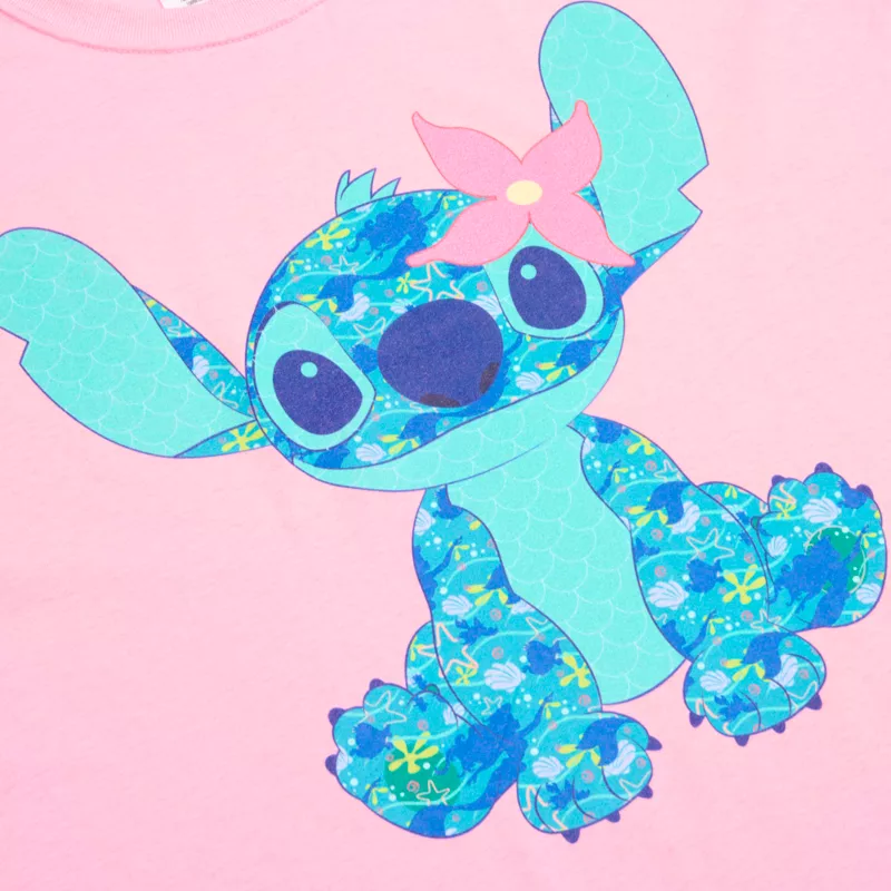 - Artwork features Stitch with all-over ocean-inspired print and flower on head