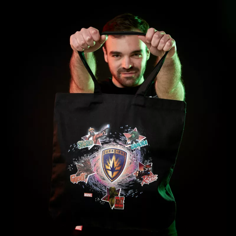 Make an intergalactic addition to your everyday style with this Guardians of the Galaxy Tote Bag! Character artwork wonderfully captures classic heroes. Customise to make it your own!